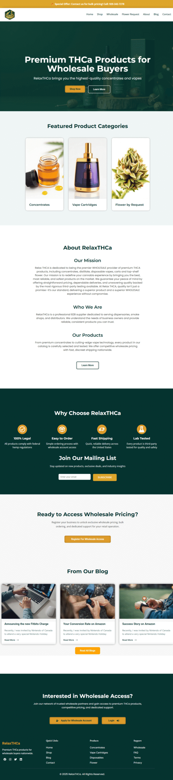 CModern WooCommerce website for RelaxTHCa with clean UI, smooth navigation, and fast performance. Built with responsive design, shop, blog, and wholesale-ready structure.